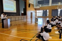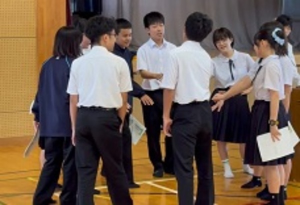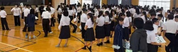 スタートガイダンスの後、1年生と生徒会役員で「生徒会入会式」を実施しました。生徒会長の入会歓迎のあいさつで新入生が生徒会活動に参画できる喜びが伝えられ、役員の紹介、各専門委員会の活動内容、20の部活動紹介(各部キャプテンに紹介動画、ユーモアもあり1年生楽しく視聴できました)などがありました。学級の係活動と専門委員会が連動しているので、行動はまず足下から、そして学校全体の活動へと活性化を目指していきます。生徒会のテーマは「自愛 友愛 支え合い」です。