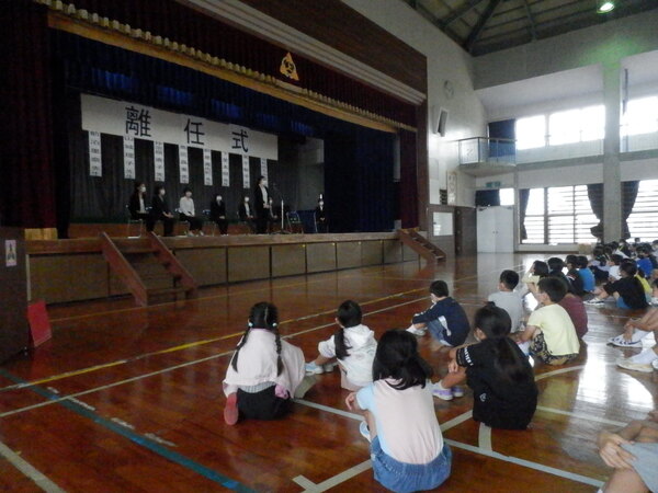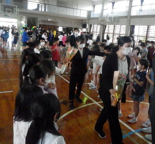 離任式が終わり子ども達が作った花道を通り過ぎる頃には、