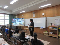 五年生は、 総合学習で宮古島市役所の久貝さんを招いて、ロベルトソン号にまつわる講話や石碑の見学をしました。