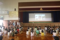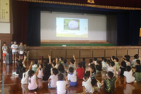仕事内容や全校児童へのお願い、クイズを出題するなど、委員の活動を紹介してくれました。