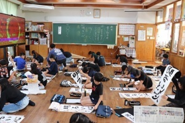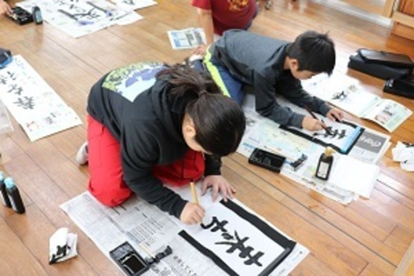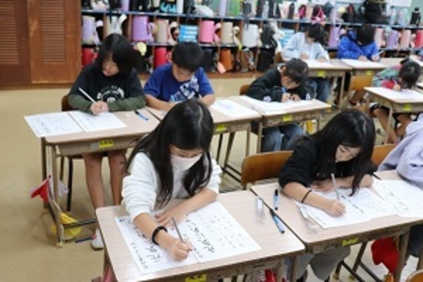 1・2年生は硬筆、3年生以上は毛筆で、新年の抱負などを真剣に書いていました。