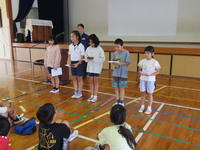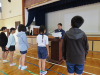 本日の表彰集会では、「第64回全沖縄児童生徒書き初め展(1名)」、「第62回全沖縄青少年読書感想画・文コンクール(6名)」、および「宮古島市市制施行20周年マンホールコンテスト(5名)」の伝達表彰が行われました。